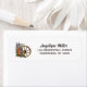An elegant rustic wood floral wagon wheel return address labels that are perfect for wedding, birthday, and event invitation envelopes.