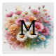 Floral watercolor monogram pink daisies flowers poster
