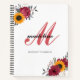 Floral Watercolor Sunflower Burgundy Monogram Notebook