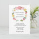 This wedding invitation is shown in a classic layout with a watercolor floral wreath print of peonies and daffodils with a matte paper choice. Select your choice of paper. Body text shown in a black and slate grey colours. Customise this item by changing the sample text and putting your information in it instead.