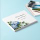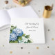 This wedding guest book is shown in lovely hydrangeas print; text is shown in a slate grey colour.