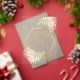 A modern acrylic wedding card with delicate blush roses, lush greenery, and elegant golden geometric accents. The transparent acrylic design creates a unique and stylish way to announce your special day, perfect for couples who love romantic and timeless wedding details.
