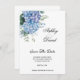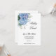 This wedding save the date invitation is shown in a modern layout with a lovely blue hydrangea watercolor print.