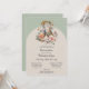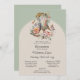 Quinceanera Invitation to church ceremony and reception, with bohemian floral cowgirl boots, roses and country flowers. The design has vintage and classic lettering, set within an elegant modern arch shape, on a base colour of sage green and neutral beige. Perfect for boho floral, western, equestrian, rodeo and rustic country themes at any time of the year. For coordinating invitations, stationery, gifts and party decor, please browse my Boho Floral Cowgirl Boots Quinceanera Collection.