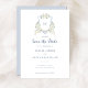 Floral White Dusty Blue Crest Save the Date Wedding Invitation. Traditional Wedding Invitation. White Flowers Greenery Wedding Monogram Crest Save the Date Card