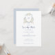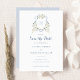 Floral White Dusty Blue Crest Save the Date Invitation