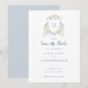 Floral White Dusty Blue Crest Save the Date Wedding Invitation. Traditional Wedding Invitation. White Flowers Greenery Wedding Monogram Crest Save the Date Card