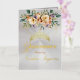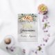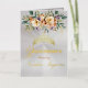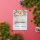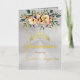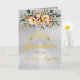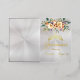 Spring Floral bouquet and gold tiara on a white pearl background embellish the front of this folded card invite. The inside features a placeholder for a photo and the details of the event.
