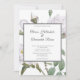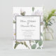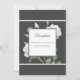 Elegant Floral Wedding Invitation with White Roses and touches of greenery on white background, and Grey-Black reverse.