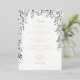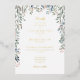 Beautiful floral greenery wildflowers frame your special wedding celebration details set in elegant real gold foil typography with your special wedding photo on the reverse. Designed by Thisisnotme©