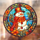 Floral Winter Smiling Snowman Faux Stained Glass Window Cling