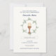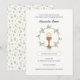 Elegant First Communion invitation featuring a graceful floral wreath of leaves and branches surrounding bread and chalice symbols. Editable text allows you to personalise every detail, with a matching botanical pattern on the reverse for a refined, cohesive look.
