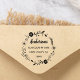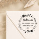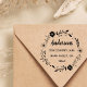 This customisable rubber stamp featuring simple typography, modern calligraphy and a rustic floral wreath.