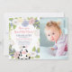 Floral Wreath Girl Cow 1st Birthday Photo Invitation