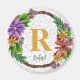 Floral Wreath Initial Letter Monogram Name Marble Magnet