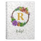 Floral Wreath Initial Letter Monogram Name Marble Notebook