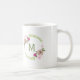 A mug featuring an illustration of flowers and greenery arranged in a circle. Personalise with your initial.