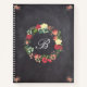 Floral Wreath on Chalkboard Monogram Notebook