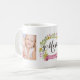 This pretty mug features a beautiful watercolor floral wreath, pink banner, and text that reads "Mum, you're the best!" in rustic lettering and calligraphy script. Customise by adding two photos, one on either side of the wreath design.