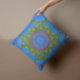 Fresh and vibrant, this pillow combines a bright blue background with a graceful pink flower wreath. Perfect for a cheerful yet elegant accent in any room.