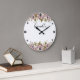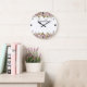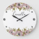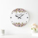 Floral wreath spring summer pink flowers green lea large clock