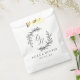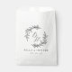 Custom-designed wedding favour bags featuring modern calligraphy with hand-drawn style floral wreath design.