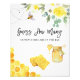 This bee themed guess how many honeycomb are in the jar sign features a delicate floral arrangement, bee and heart flight path lines.