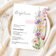 A white background, with a large pink cross decorated with pink and purple flowers. Personalise and add the name and details details.