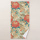 Beautiful towel set in a variety of peachy/orange, teal shades and soft browns, backed in a pale linen. Unique, elegant, and a great compliment to your beautiful home decor.