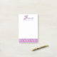 Emily personalised F name meaning or message post it notes. Initial F monogram name and meaning in purple, pink and white. Ideal for a personalised gift for a girl who has a name that starts with the letter F. This example reads Florence Flourishing blossom. Prosperous, kind and wise or you can customise the text with your own name or message if required. Makes a unique office celebration gift. If you need help with other names please contact me. © Decorative typographic letter F flowers with hearts hand drawn and pattern uniquely created by Sarah Trett for www.mylittleeden.com