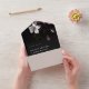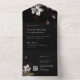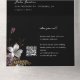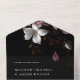 The invitation showcases a stunning black background that exudes sophistication and sets the stage for an unforgettable celebration. Adorned with an array of dark and moody florals flourishing with a captivating blend of deep purple, velvety purples, and earthy shades of brown. These captivating blooms, reminiscent of wildflowers found deep in the forest, bring a sense of drama and depth to the design.