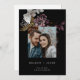 The invitation showcases a stunning black background that exudes sophistication and sets the stage for an unforgettable celebration. Adorned with an array of dark and moody florals flourishing with a captivating blend of deep purple, velvety purples, and earthy shades of brown. These captivating blooms, reminiscent of wildflowers found deep in the forest, bring a sense of drama and depth to the design.