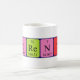 Florentin spelled out as Fl O Re N T In (Flerovium Oxygen Rhenium Nitrogen Tritium Indium) on a mug for the scientist in you.