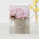 Flores de Geranio naturales en un bote de cristal envuelto con encaje de color rosa