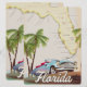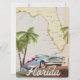 Beautiful illustrated map of the state of Florida and islands in the region in a beautiful vintage style featuring a retro 1950s car.