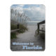 Florida Beach Path with a wooden boardwalk leading past reeds to the Gulf of Mexico.