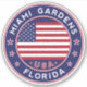 Miami Gardens sticker with American flag, rounded shape.