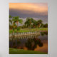 Photograph of a gorgeous sunset reflecting off a lake with Palm trees, in a tropical setting. Photographed in Florida.