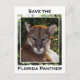 A close up of a beautiful Florida Panther, the most endangered animal in North America, with the words Save the Florida Panther around it.