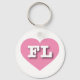 This key chain features a vibrant pink heart containing the bold, white, upper case letters FL, the official abbreviation for the state of Florida, the sunshine state.