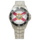 Has heft and feel of expensive stainless steel quartz watches. Good band with safety catch. I removed links, which is easy because engraved arrows show direction to push the linking pins. As always by this seller, the image (a railroad logo) is a perfect reproduction of my emailed image, and is precisely spaced and aligned.