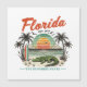 Celebrate the warm, vibrant spirit of Florida with this tropical-inspired “Florida, The Sunshine State” greeting card. Featuring a glowing sunset over a sandy beach, iconic Florida wildlife like a crocodile, and tropical foliage, this artwork captures the essence of coastal living. Perfect for those who love the ocean breeze, wildlife, and the laid-back lifestyle of the southeastern paradise. Whether you're a native Floridian or a beach lover at heart, this design radiates sunshine and vacation vibes all year long.