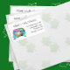 Camping themed return address labels. White labels with a cute silver travel trailer image and tropical flamingos next to bright aqua chairs. Name, or names, go at the top with smaller printed text aligned right for address. Five lines can be used if needed.