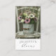 An elegant lush rustic bouquet of pink and cream flowers in a weathered metal can brimming with a delicate bouquet of cream and pink flowers sits at the centre of this design, for a rustic boho-chic vibe. Information and social media on the back of the card. A rustic boho chic style.