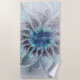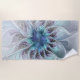 Flourish Abstract Modern Fractal Flower With Blue Beach Towel