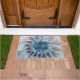 Flourish Abstract Modern Fractal Flower With Blue Doormat