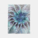 Flourish Abstract Modern Fractal Flower With Blue Fleece Blanket