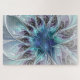 Flourish Abstract Modern Fractal Flower With Blue Jigsaw Puzzle
