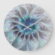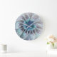 Flourish Abstract Modern Fractal Flower With Blue Large Clock