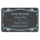Elegant and trendy Flourish Chalkboard Save the Date Premium Magnet featuring a chalkboard look background and a fancy swirl and leaf art deco border in light blue. Easy to customise, simply add your wedding details. Click "Customise It" to find more personalisation options.
